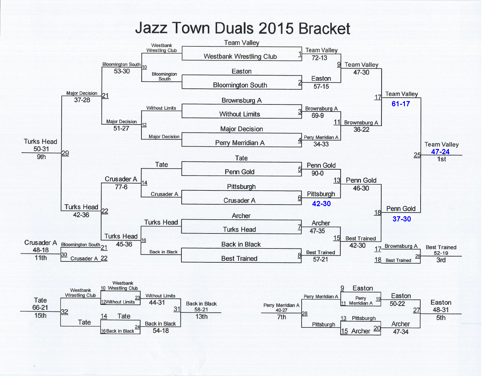 | Iowa's Team Valley takes the title; other out-of-state teams place 2nd-10th at the 2015 Jazz Town Duals |