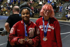 The Riverdale Girls squad outscored runner-up host John Ehret 79 points to 46 points. And they did that with only six wrestlers. Naslin Ayala, Layla Higgins, Alyssa Hyde, Chloe Leblanc and Samantha Aroche won individual titles and Gabrielle Jenkins placed second. Some might question the legitimacy of the championship because only one other team, host John Ehret, had more than six wrestlers (Ehret had nine). No other school had more than three. First of all, who cares? One can only wrestle those who come. More pressing an issue for some teams - two weight classes had four girls and one had six. Riverdale girls won all three of those.