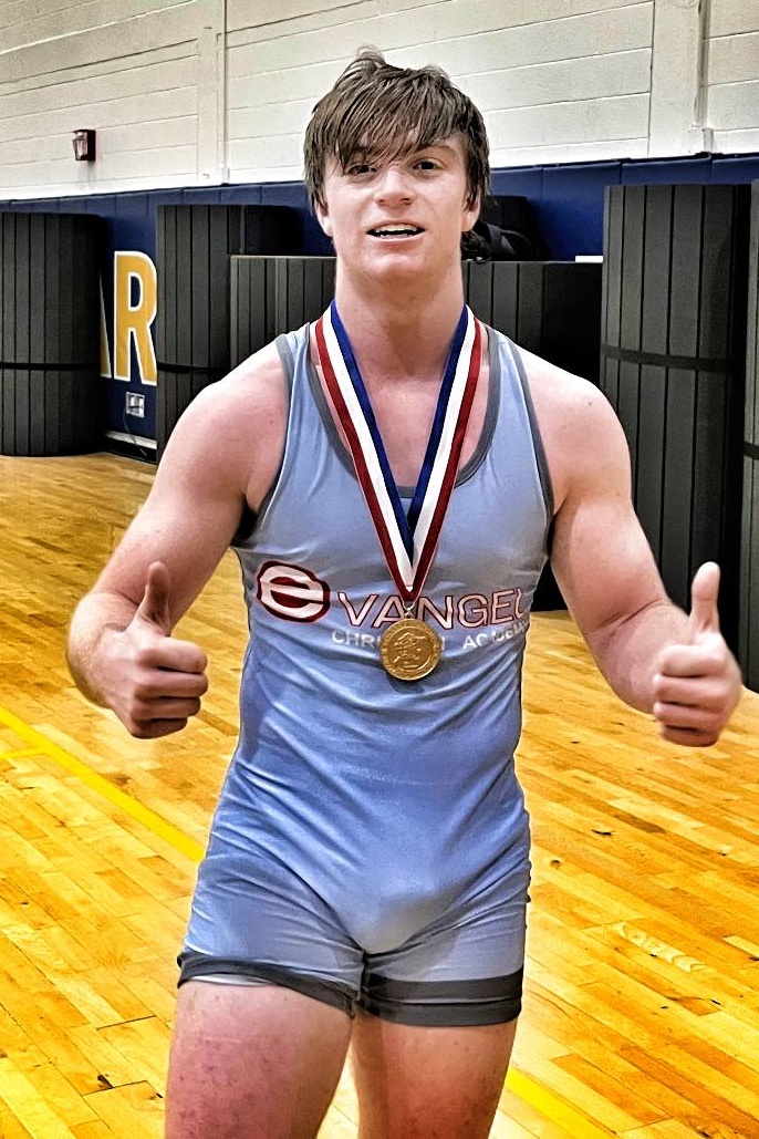 Evangel's Joseph Gilreath, a two-time defending Division III state champion, won his third tournament at the St. Mark's Lone Star Christmas Invitational. The Eagle senior won with a quarterfinal fall in 1:39, a 21-10 semifinals decision and a fall in 4:30 in the finals. Gilreath is 15-0 with eight falls, two technical falls and three major decisions. |