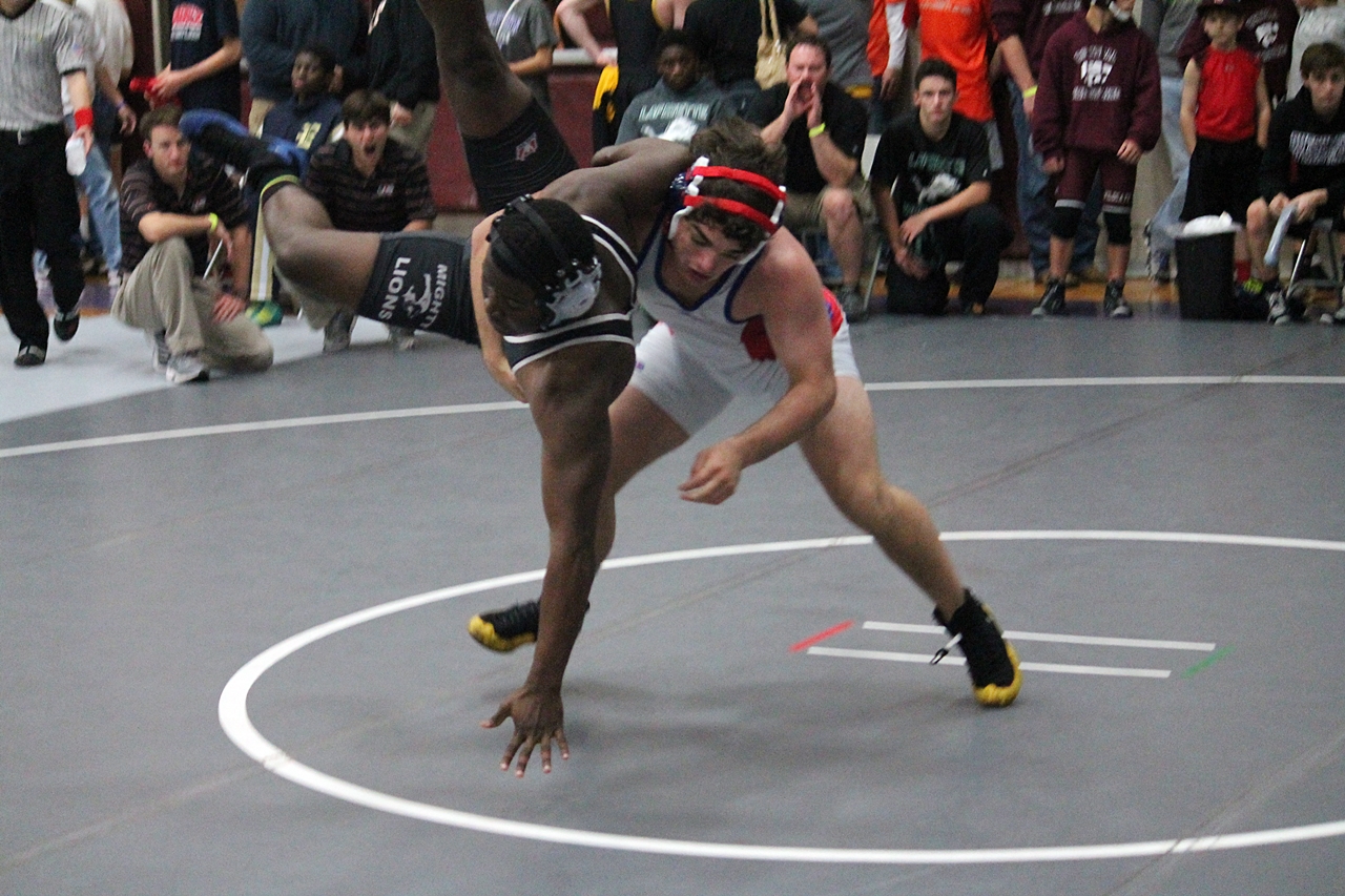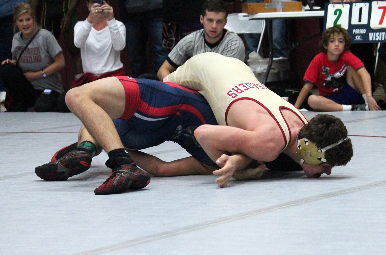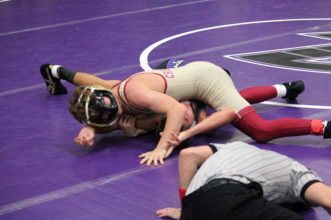 his advantage by pushing the Ehret wrestler's head down and spinning