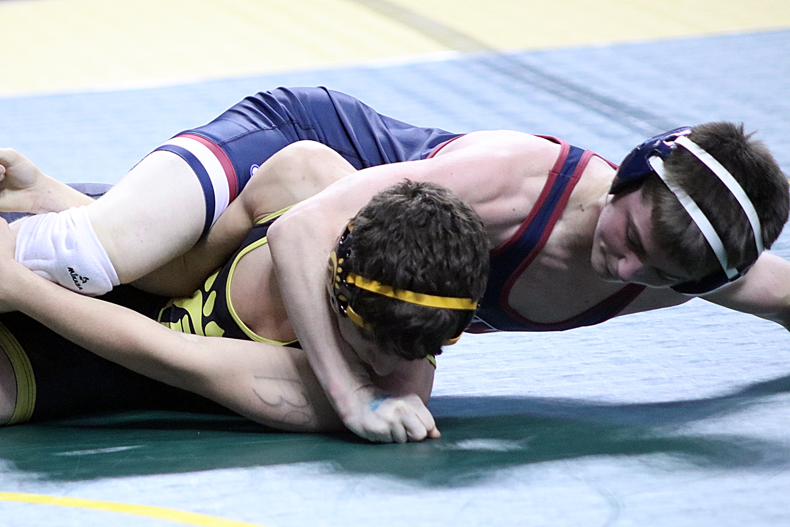 pinned his quarterfinals opponent in 2:44 and pinned fourth-seeded Riley
