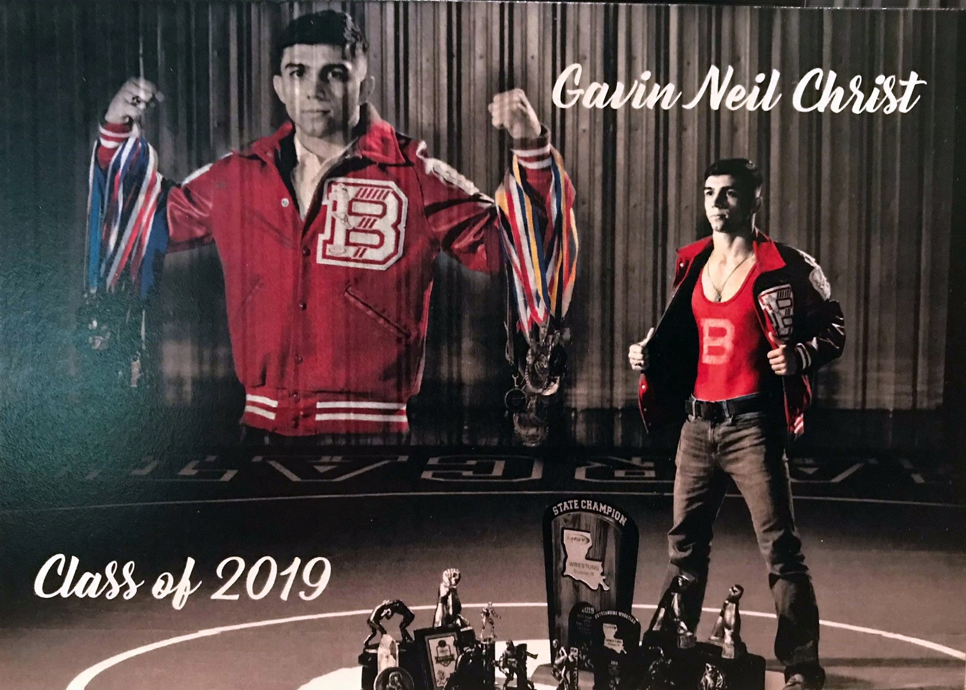 Gavin Christ placed in every LHSAA State Wrestling Championships in which he entered. In 2014 he placed fourth as a seventh grader. In 2015 he placed fifth as an eighth grader. From 2016 to 2019 he placed first, becoming a four-time Division III state champion, joining Basile's Carmen Cortez (1994, 1996-1998 - as a freshman in 1995 Cortez placed second) and Jimmy Vidrine, who won five consecutive state championships from 1960-1964. He joins 17 wrestlers who have won four or more state championships since 1948: