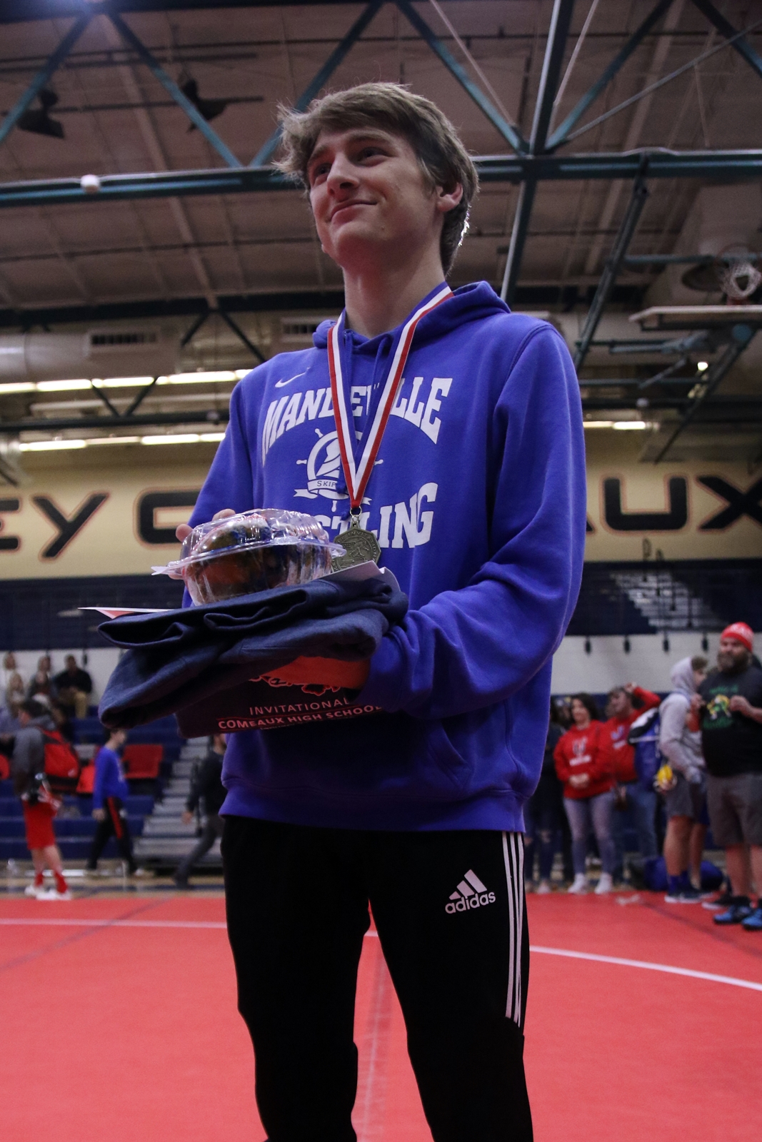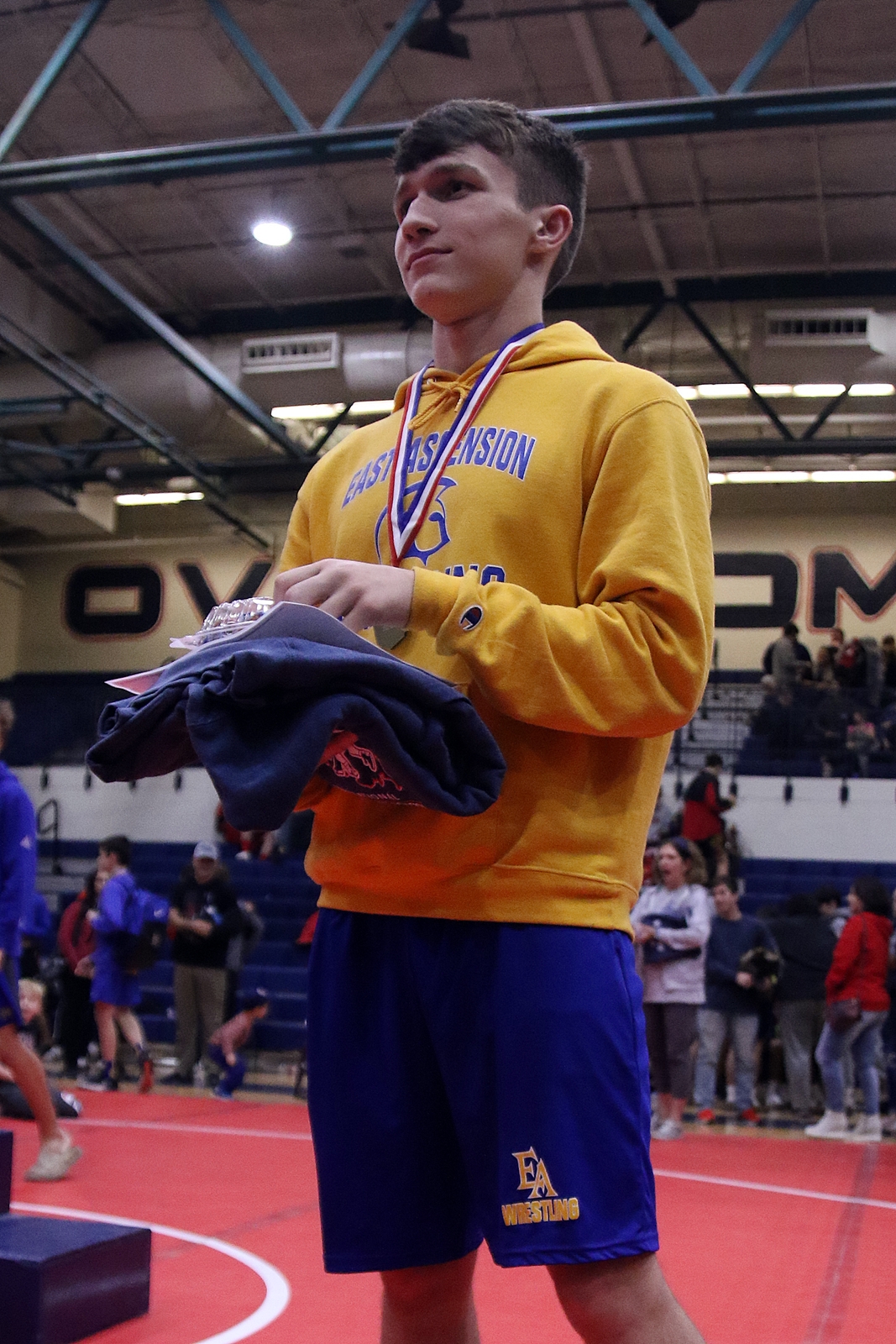 After the quarterfinals the Rebels were still in good shape. Teurlings Catholic and Parkway each advanced five wrestlers to the semifinals. The Rebels also topped the Panthers in the semifinals, placing three in the finals to only two for the Panthers. One Rebel, freshman Ethan Boudreaux, won his weight class, whereas the other four finalists for the Rebels and Panthers placed second. But things did not work out well for the Rebels in the consolation rounds. Of their remaining 11 wrestlers, Teurlings Catholic managed only a fourth-place finish and a sixth-place finish. Parkway had one wrestler place third, but three placed fifth and two placed sixth.