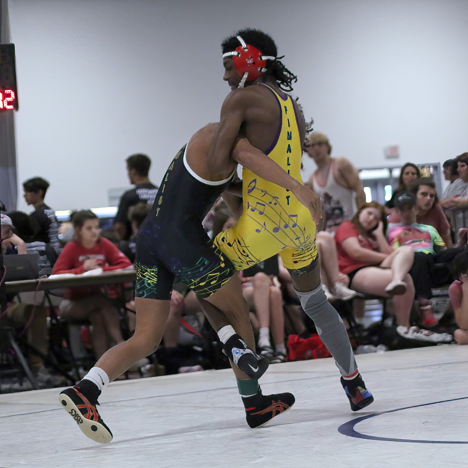 Duals "Finalist" singlets. Westmoore's "Finalist" singlets are black.