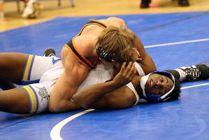 onto his back to score a fall. In a losing effort, EA's Jamarcus Thomas