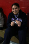 The staff writer only knows a few of these young ladies' name. He thinks he got the names correct in the photo at the beginning of this page, but is not sure. If a reader knows the names of the girls he does know, please email him the photo and the lady or ladies are in it, from left to right. Each caption below a weight class is a link to his email.