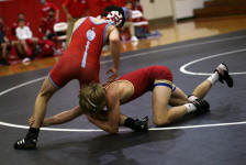 sophomore Sam Riles, who did well not to get pinned by the best 138-pound